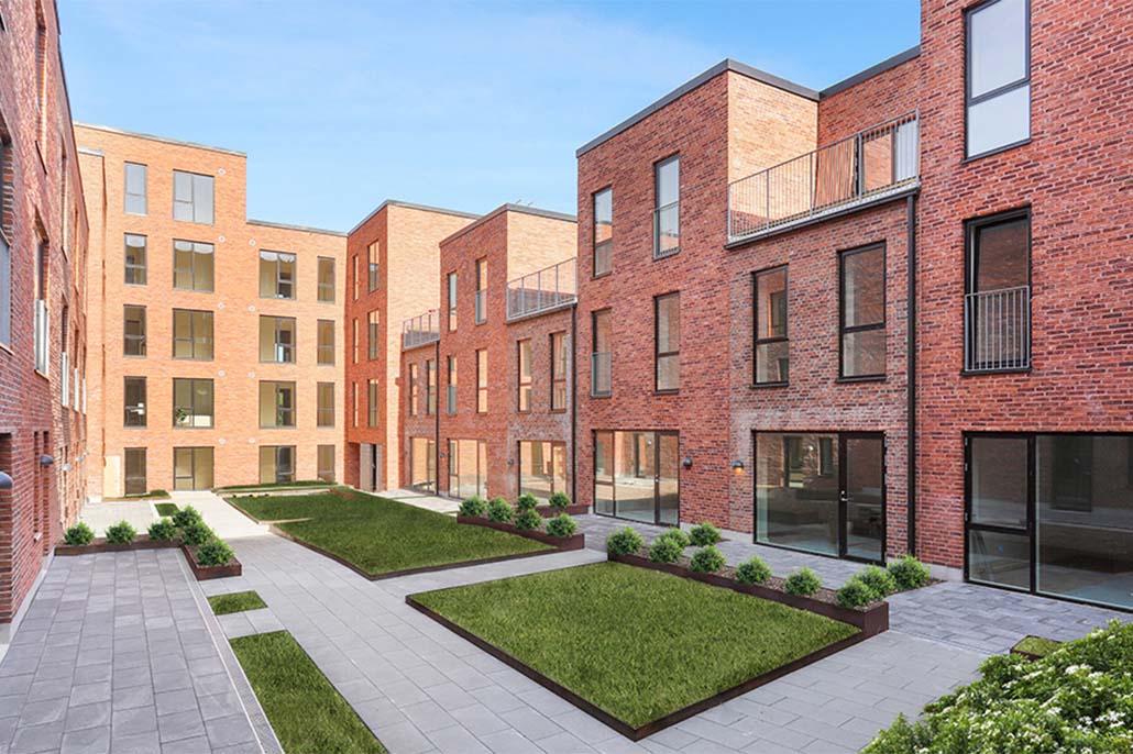 Lejlighederne varierer fra 50 til 89 m², mens rækkehusene varierer i størrelserne 121 til 141 m². Med hyggelige caféer, gode skoler og en vifte af kulturtilbud er området et oplagt valg for både børnefamilier, par og singler.