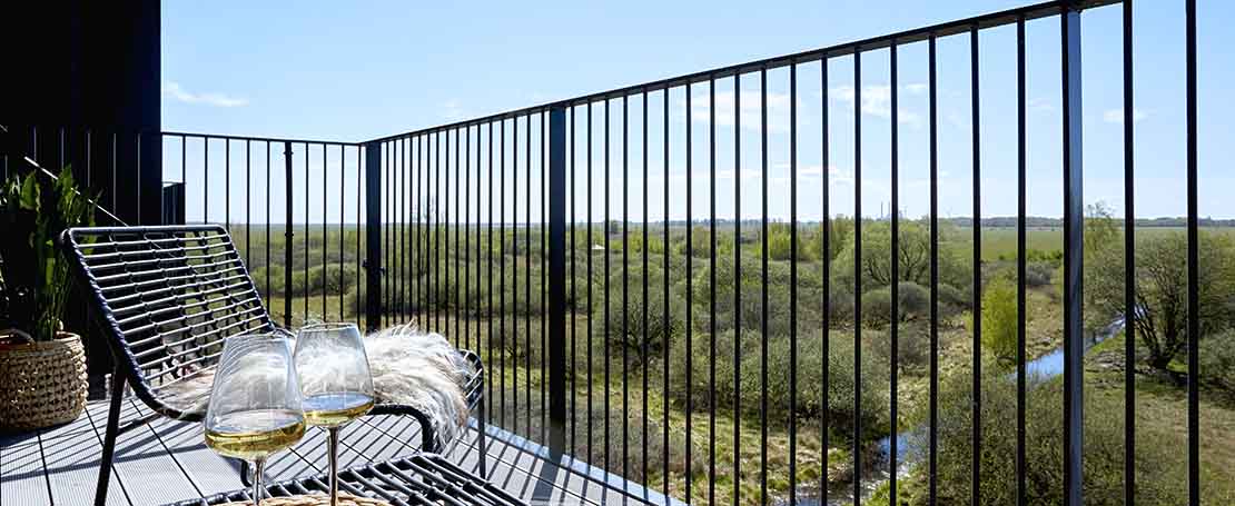 Lejlighederne i stueplan har egne private terrasser. De øvrige lejligheder har gode altaner nogle med skøn udsigt udover det fredede Kalvebod Fælled.