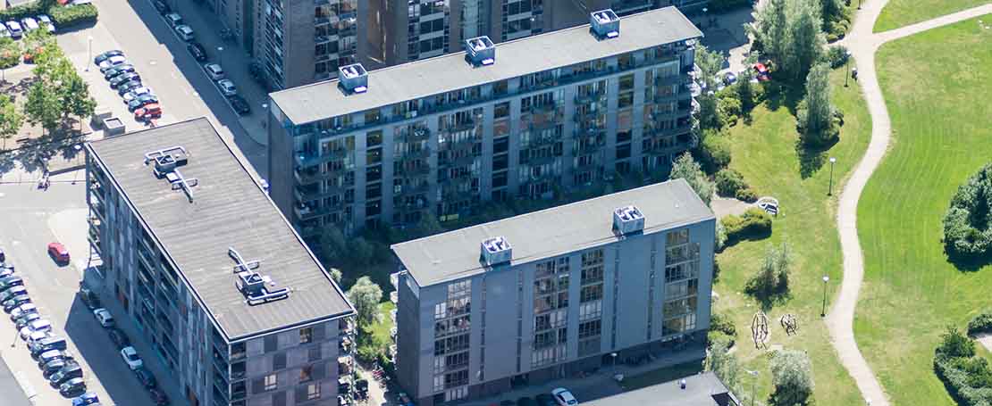 Ejendommen består af 70 lejligheder. 2 4 værelser i størrelserne fra 75 til 103 m².