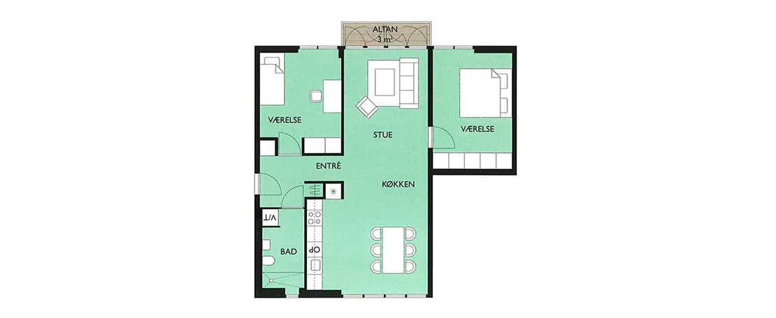 3 værelses lejlighed i Grønningen