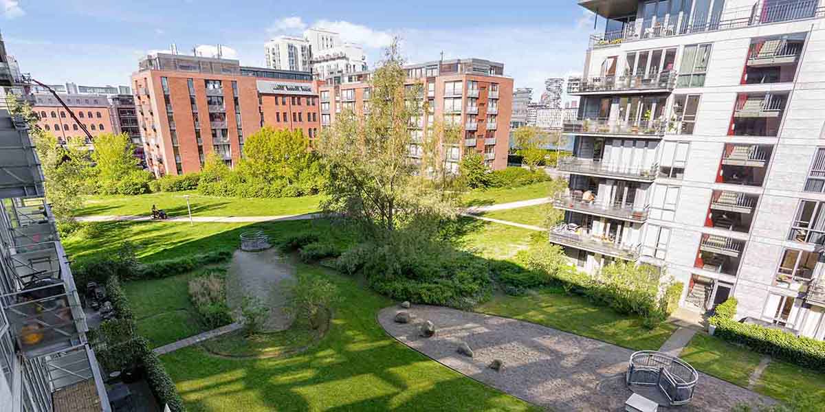 Lejlighederne er fordelt på to blokke med en attraktiv beliggenhed ved den grønne kile, der strækker sig fra Amager Fælled til Havnefronten langs Islands Brygge og med gåafstand til institutioner, offentlig transport, caféer og Islands Brygges hyggelige specialbutikker.